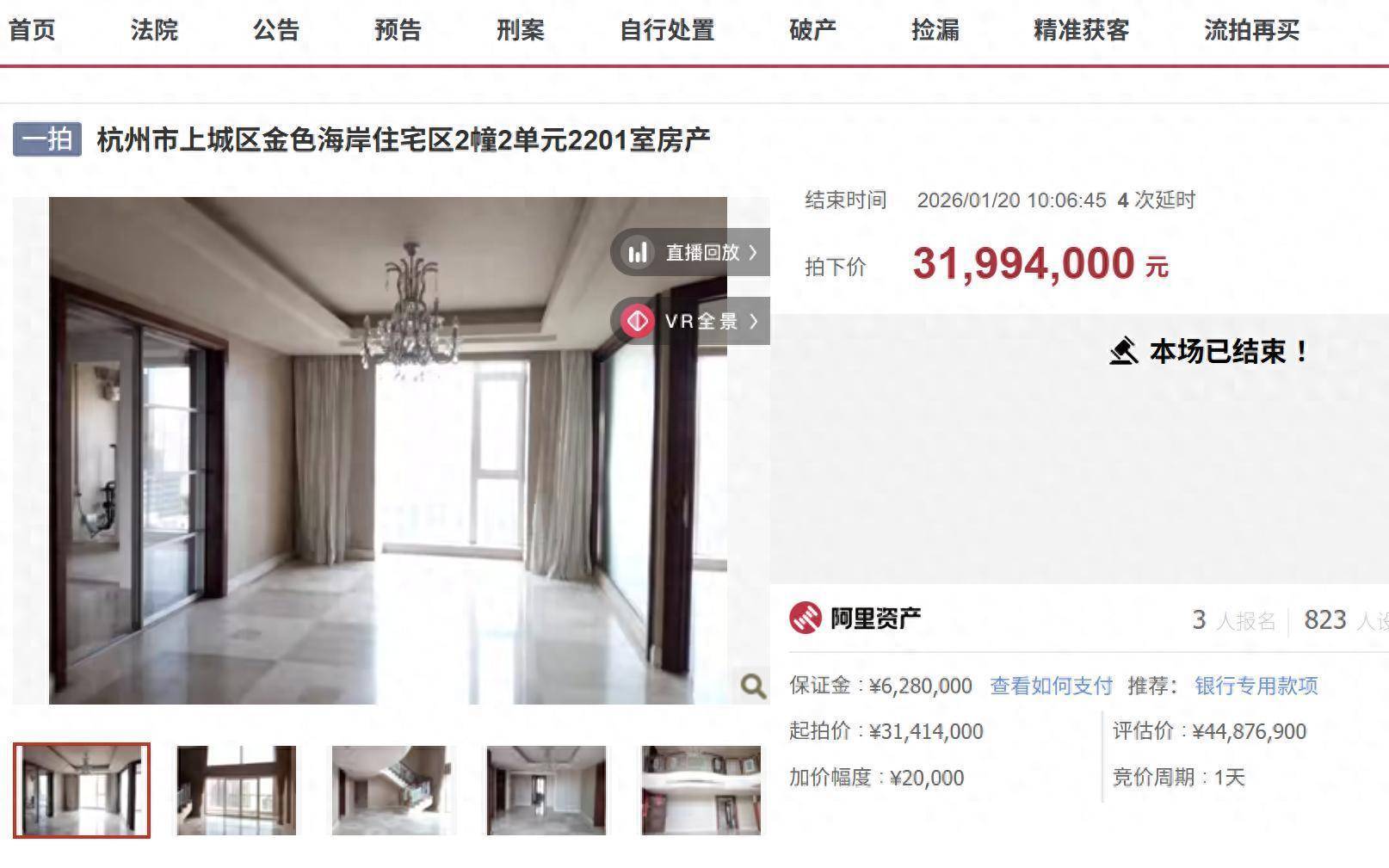 这次被功令拍卖的房源,位于杭州南星板块的金色海岸小区。动作杭州老牌一线江景豪宅,该小区直面钱塘江,地舆位置后天不良。据贝壳App数据披露,该小区旧年12月挂牌价已超12万元/平方米,9月成交均价则为8.19万元/平方米,妥妥的高端豪宅梯队。