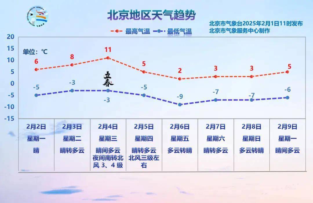 未来迎来新的一周,瞻望异日一周大部分期间以晴到多云为主,气温先升后降。其中4日(周三)白昼最高气温可升至11℃,而5日前后受较强冷空气影响,又会迎来大风降温天气。